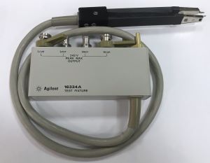 The 16334A is designed for impedance evaluations of SMD. The minimum SMD size that this fixture is adapted to evaluate is 1.6(L) x 0.8(W)[mm]. The tweezer's contacts on this fixture makes it easy to hold the DUT.